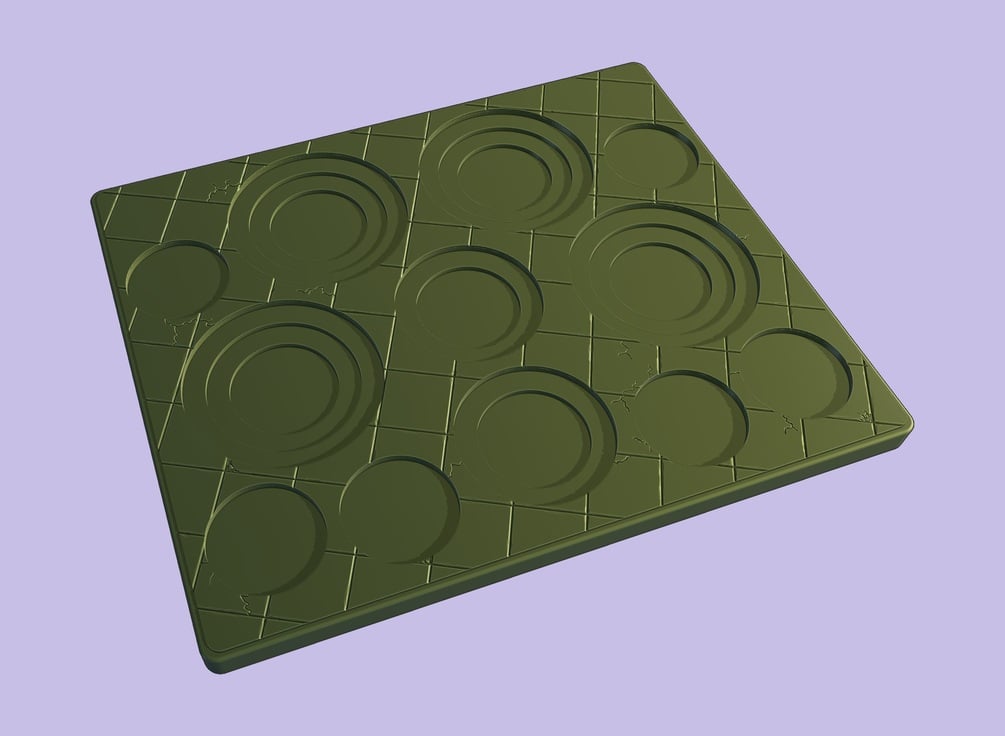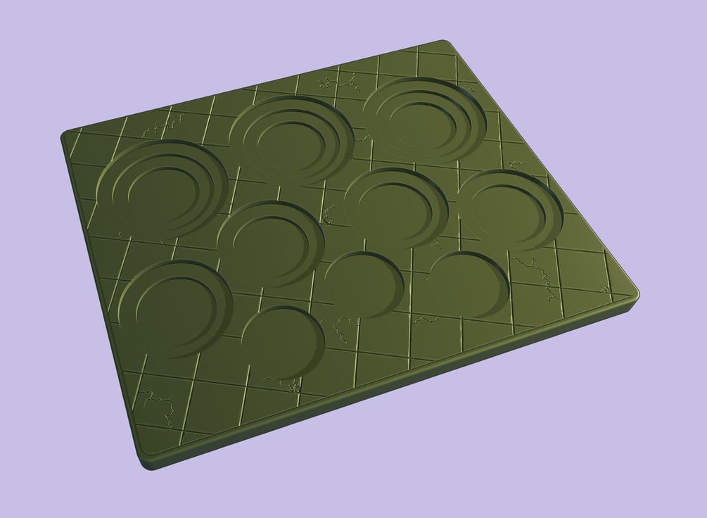 Download includes different variations to hold 10, 12, 13 or even 14 miniatures. Comes flat, or with pavement-like topping to match your M:CP Bases.